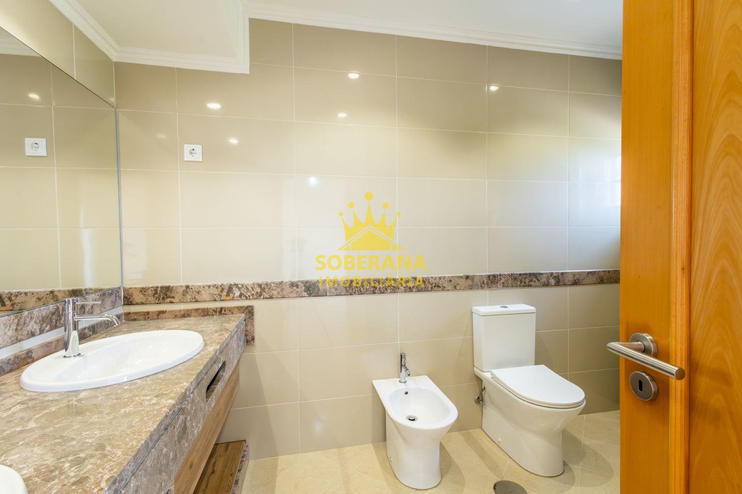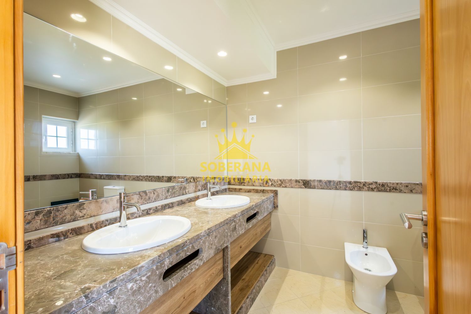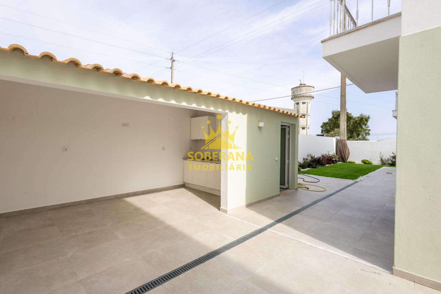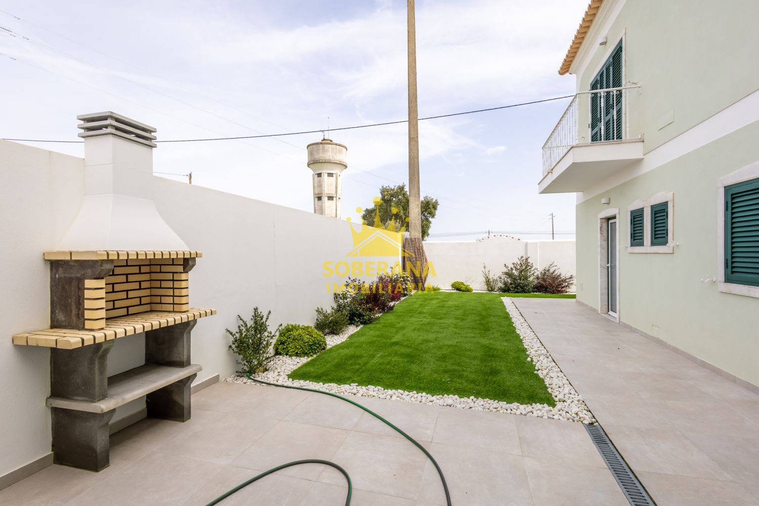 Inserida em condomínio fechado, belíssima moradia individual T5, com acabamentos de luxo e com excelente espaço externo para lazer e parqueamento. Localizada a 5 minutos do centro de Alpiarça e a 20 minutos do centro de Santarém, a moradia se encontra em zona sossegada e também à 3 km do belíssimo parque natural Abufeira dos Patudos. No rés de chão: - Hall de entrada em estilo americano, com escadas de acesso ao primeiro andar e espaço de arrumação por baixo das escadas. - Sala de estar com recuperador de calor e com sistema de distribuição de calor para as outras divisões. - Cozinha equipada com placa, forno, exaustor, microondas, máquina de lavar loiça, frigorífico e cilindro elétrico. - 1 divisão que poderá servir como quarto, escritório, ginásio ou outras finalidades. - Casa de banho com duche. - Garagem fechada para 1 viatura e arrumos. No 1º andar: - Hall em estilo americano. - 3 quartos enormes com roupeiro embutido e varandas. - 1 suíte com casa de banho com pia dupla e banheira. - 1 casa de banho de uso comum, com janela, com poliban e chuveiro com jato horizontal e vertical. Sótão em bruto com pé direito alto e que oferece muitas possibilidades para novas divisões. Na parte externa temos um espaço gourmet com cozinha e casa de banho com duche. Churrasqueira, jardim com relva sintética e espaço para parquear minimamente mais 2 carros. Características de conforto: - Pré instalação de ar condicionado. - Pré instalação de aspiração central. - Pré instalação de sistema de som ambiente. - Acabamentos em mármore - Janelas com corte térmico, vidros duplos e portadas externas. - Sistema de video porteiro. NOTA: Moradia nova a estrear, concluída e a espera da emissão da licença de utilização. Mais questões e pedidos de visitas, não hesite em contactar!