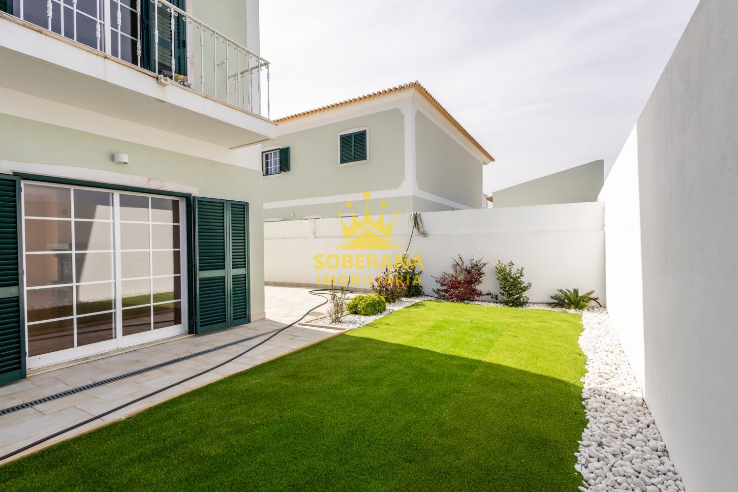 Inserida em condomínio fechado, belíssima moradia individual T5, com acabamentos de luxo e com excelente espaço externo para lazer e parqueamento. Localizada a 5 minutos do centro de Alpiarça e a 20 minutos do centro de Santarém, a moradia está em zona sossegada e também à 3 km do belíssimo parque natural Abufeira dos Patudos. No rés de chão: - Hall de entrada em estilo americano, com escadas de acesso ao primeiro andar e espaço de arrumação por baixo das escadas. - Sala de estar com recuperador de calor e com sistema de distribuição de calor para as outras divisões. - Cozinha equipada com placa, forno, exaustor, microondas, máquina de lavar loiça, frigorífico e cilindro elétrico. - 1 divisão que poderá servir como quarto, escritório, ginásio ou outras finalidades. - Casa de banho com duche. - Garagem fechada para 1 viatura e arrumos. No 1º andar: - Hall em estilo americano. - 3 quartos enormes com roupeiro embutido e varandas. - 1 suíte com casa de banho com pia dupla e banheira. - 1 casa de banho de uso comum, com janela, com poliban e chuveiro com jato horizontal e vertical. Sótão em bruto com pé direito alto e que oferece muitas possibilidades para novas divisões. Na parte externa temos um espaço gourmet com cozinha e casa de banho com duche. Churrasqueira, jardim com relva sintética e espaço para parquear minimamente mais 2 carros. Características de conforto: - Pré instalação de ar condicionado. - Pré instalação de aspiração central. - Pré instalação de sistema de som ambiente. - Acabamentos em mármore - Janelas com corte térmico, vidros duplos e portadas externas. - Sistema de video porteiro. NOTA: Moradia nova a estrear, concluída e a espera da emissão da licença de utilização. Mais questões e pedidos de visitas, não hesite em contactar!